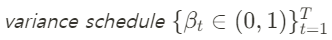 - data에 noise를 추가할 때, variance schedule을 이용하여 scaling을 한 후 더해준다.