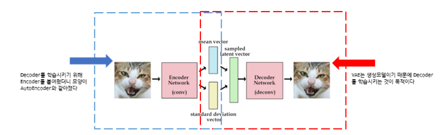 - 뒷단(Decoder, 생성)을 학습시키기 위해 앞단을 붙인 것이다.
