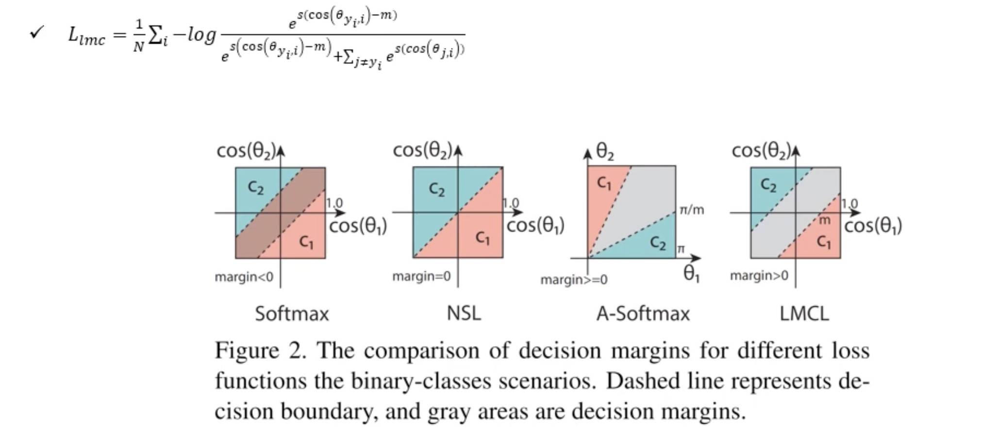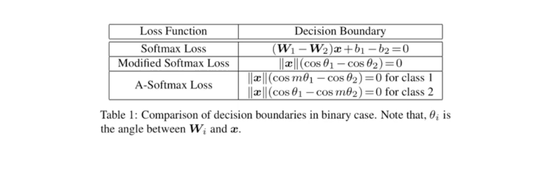 - softmax loss에서 W_i 가 정규화 되어있고 bias가 0이라고 한다면 결국 둘 간의 각도로써 decision boundary를 표현할 수 있음