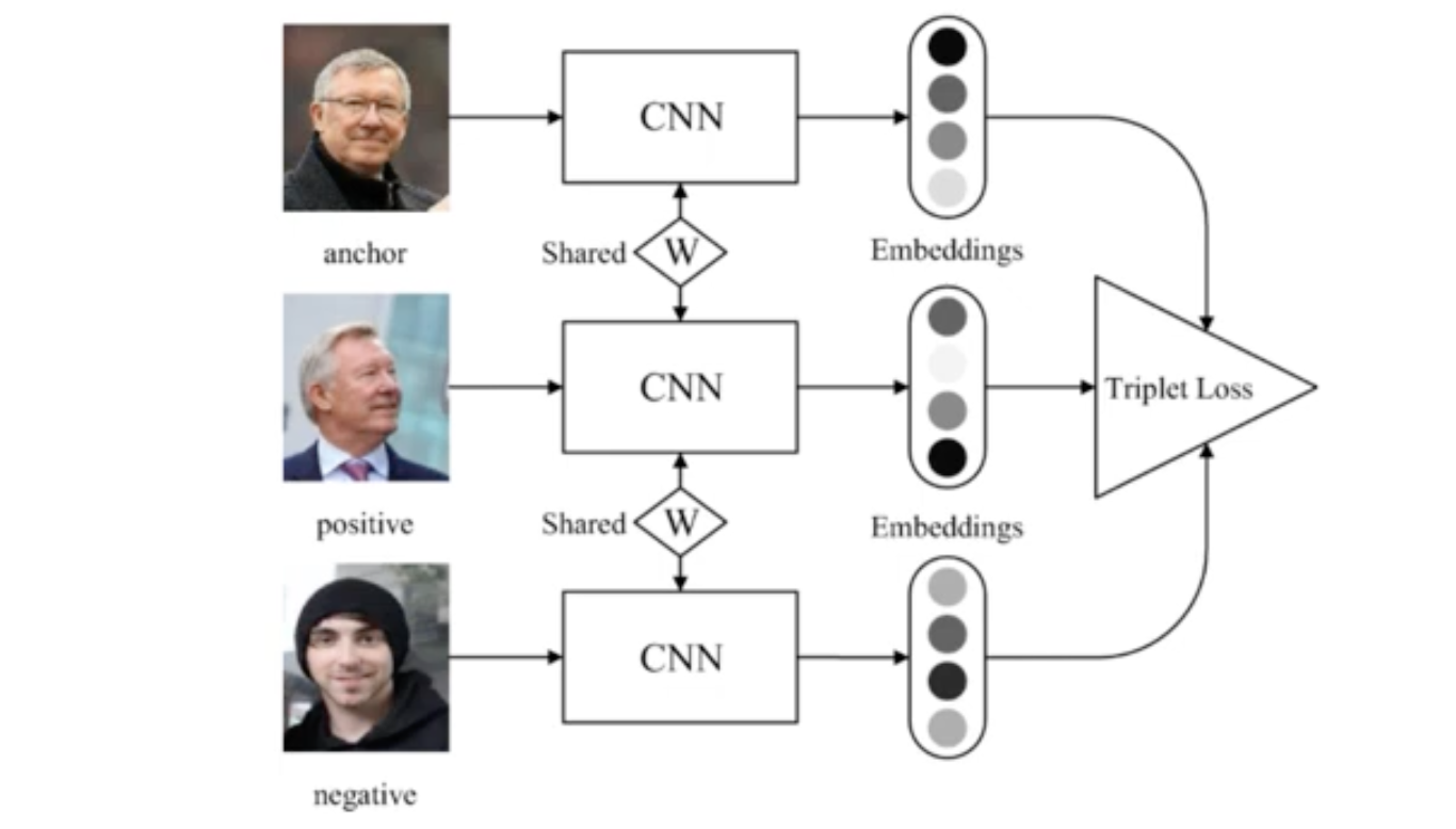 - Positive pair: anchor(기준 얼굴)와 같은 사람의 다른 사진