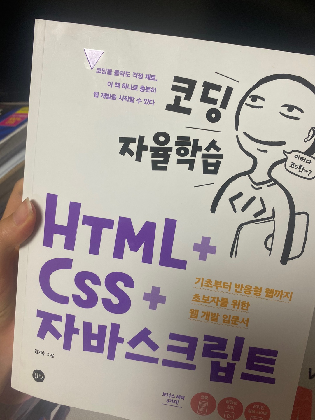 코딩 자율학습단 3기를 신청해 이 책과 함께 1달동안 프론트엔드의 기초가 되는 html, css, js 언어를 배우게 되었다.